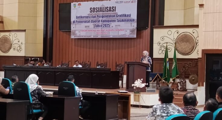 IDERAKYAT.COM —  Komisi Pemberantasan Korupsi (KPK) mempertanyakan komitmen DPRD Kabupaten Tasikmalaya dalam pemberantasan korupsi. Pasalnya, saat acara yang digelar Pemkab Tasikmalaya yakni Sosialisasi Anti Korupsi dan Pengendalian Gratifikasi, Kamis 4 Desember 2025, tidak ada satu pun anggota dewan yang hadir.
