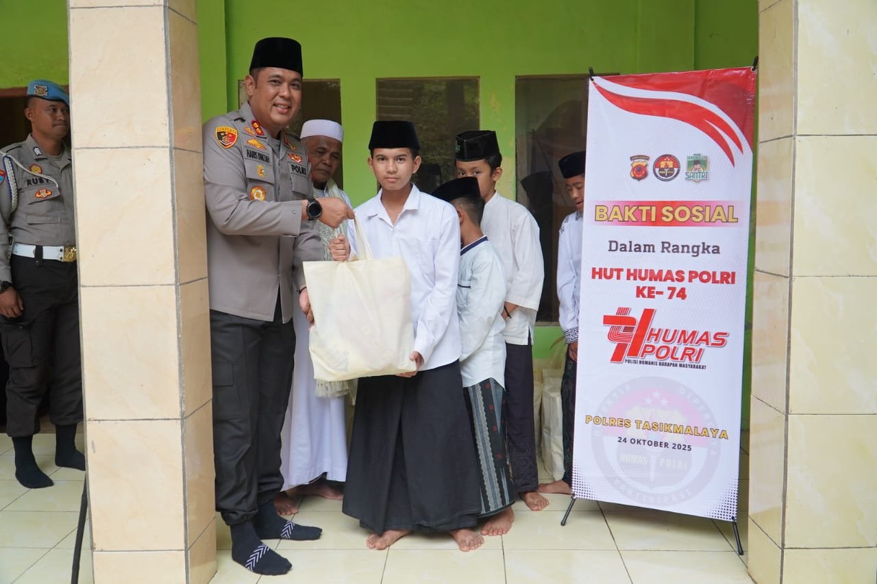 IDERAKYAT.COM – Memperingati Hari Ulang Tahun (HUT) Humas Polri yang ke-74, Polres Tasikmalaya menggelar aksi bakti sosial bertajuk “Jumat Berkah” dengan menyambangi Pondok Pesantren Sabilulhuda di Desa Sukasukur, Kecamatan Mangunreja, Kabupaten Tasikmalaya.